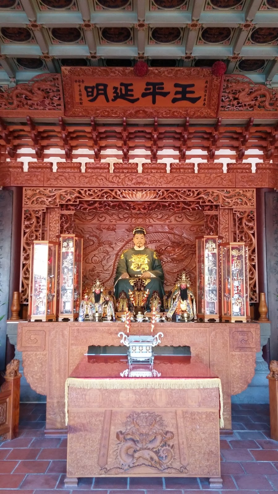 大叔的遭遇是這樣的:原本鄭氏祖廟並不在行程表中,因為騎車往林百貨途中有看到指標,想說離林百貨不遠,參觀完林百貨之後就走過來拜拜。拜完之後,老伯見我搖頭晃腦、東拍西拍,就問我,年輕人,要不要聽導覽,大叔被叫年輕人超開心,當然是say yes啦。老伯馬上遞上一份簡介,拿起簡報棒,用很專業的口吻介紹起來。口條之清晰讓我想起在軍中報簡報給高階長官聽的場景,老伯說話極有條理,娓娓道來鄭家歷史,其簡報功力之雄厚讓人吃驚,但有時候會有點鬼打牆,重複報過的東西,我想老人家導覽能做到這樣,偶爾還參雜點冷笑話 ,已是導覽界上乘之作,請掌聲鼓勵鼓勵~~~